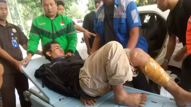 Saat dihadirkan dalam rilis di Mapolres Purwakarta, Senin (6/4/2026), Yogi tampak dalam kondisi lemah. Ia terbaring di atas brankar dengan kaki diperban dan tubuhnya disangga petugas.