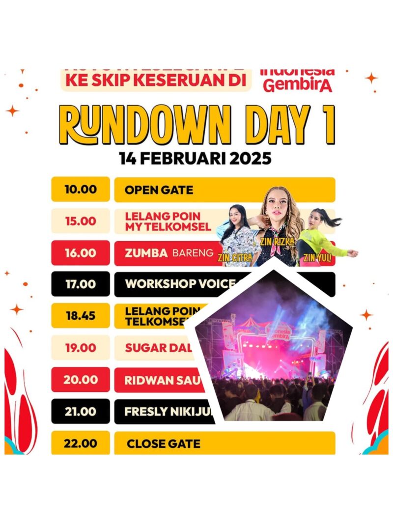 Mufasyahnews.com, Makassar– Rans Entertainment bekerja sama dengan Telkomsel menggelar event spektakuler bertajuk “Indonesia Gembira” di Kota Makassar. Acara yang ditargetkan menarik 10 ribu penonton ini menghadirkan berbagai hiburan menarik, mulai dari penampilan musisi nasional dan lokal, hingga berbagai aktivitas seru seperti Zumba, Workshop Voice Over, serta penampilan spesial dari Fresly Nikijuluw sebagai penutup acara di malam pertama. (14/02/2025).